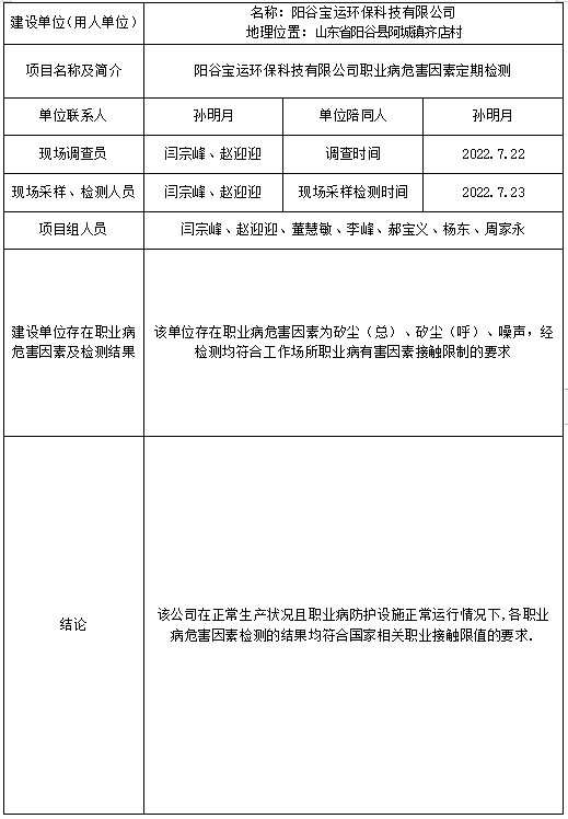 职业卫生定期检测公示