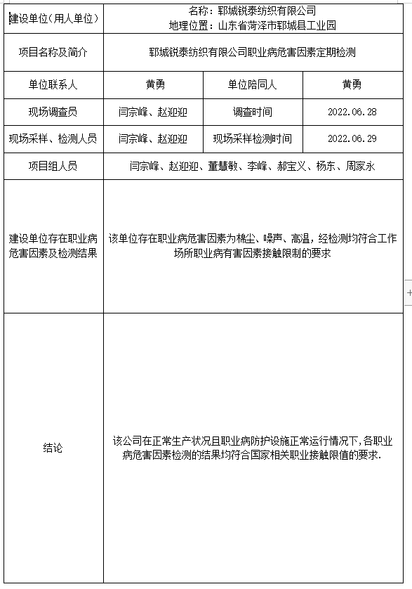 上一篇: 郓城锐泰纺织有限公司
